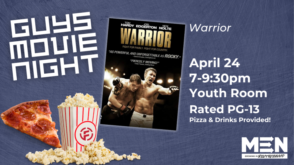 Men you are allowed to bring your sons at your discretion. Bring a friend! This movie is rated PG-13. Contact Lynn Thomas if you have any questions!